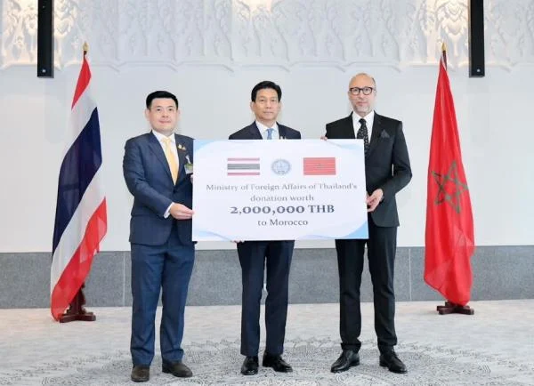 في التفاتة إنسانية، تبرع نائب رئيس الوزراء ووزير الشؤون الخارجية التايلاندي، بارنبري باهيدا نوكارا، بمبلغ مليوني بات تايلاندي (حوالي 57 مليون سنتيم)، للمتضررين من الزلزال الذي ضرب المغرب ليلة الجمعة الماضية.